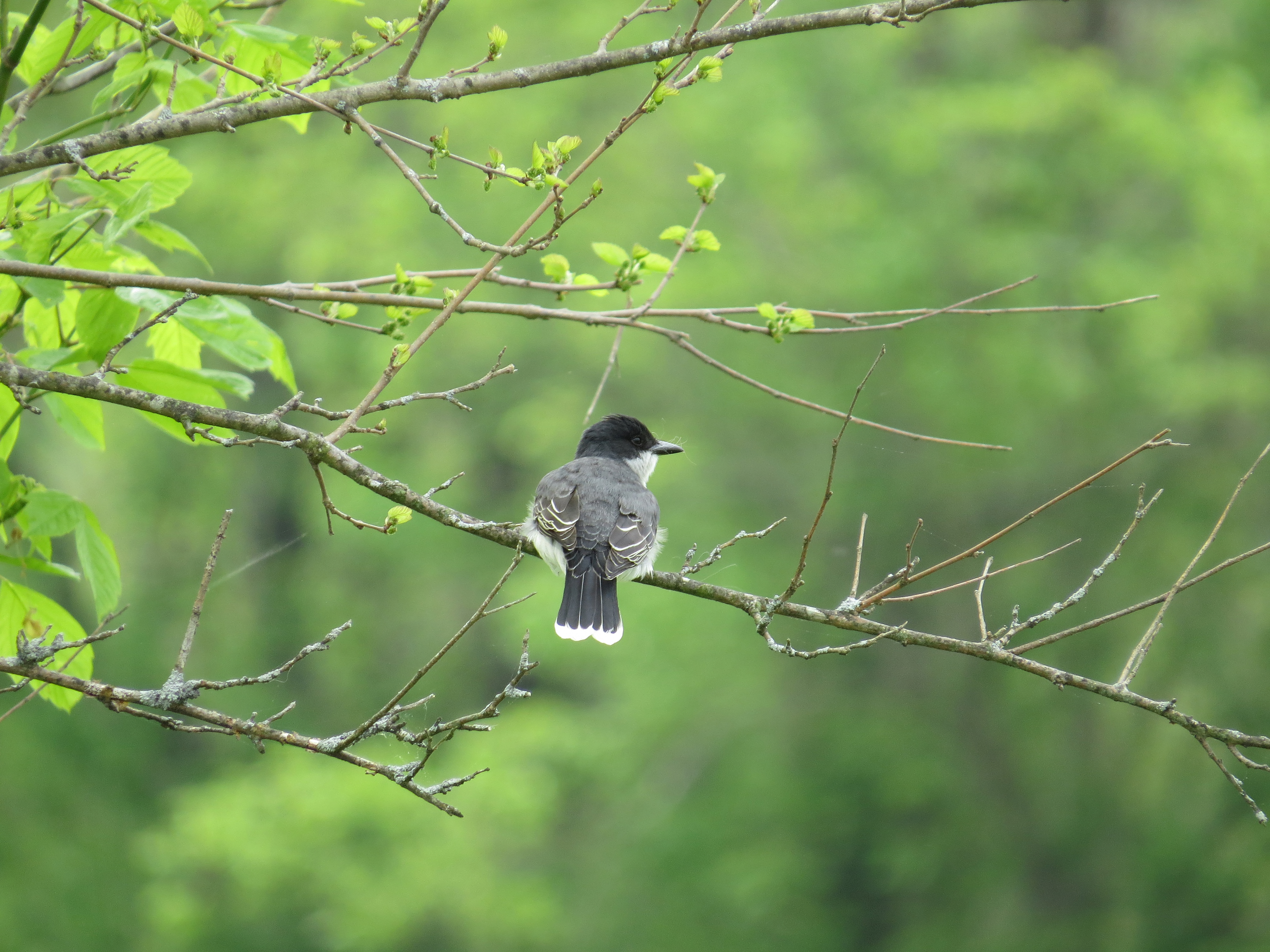 An Eastern Kingbird perched on a tree branch.