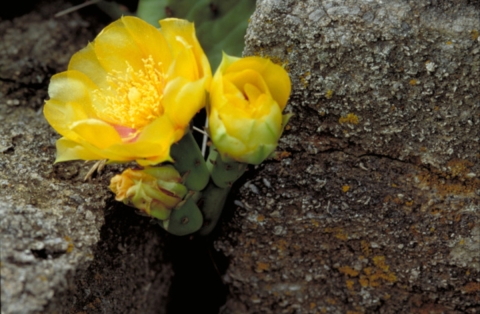 Close-up of delicate yellow blossoms growing among rocks. For additional resources about wildflowers visit the National Plants Database: National Plants Database http://plants.usda.gov/.