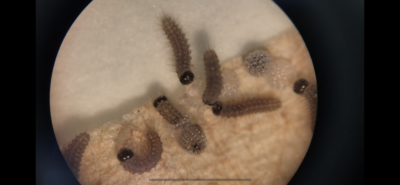 Eastern regal fritillary larvae hatching from eggs in the captive-rearing facility.