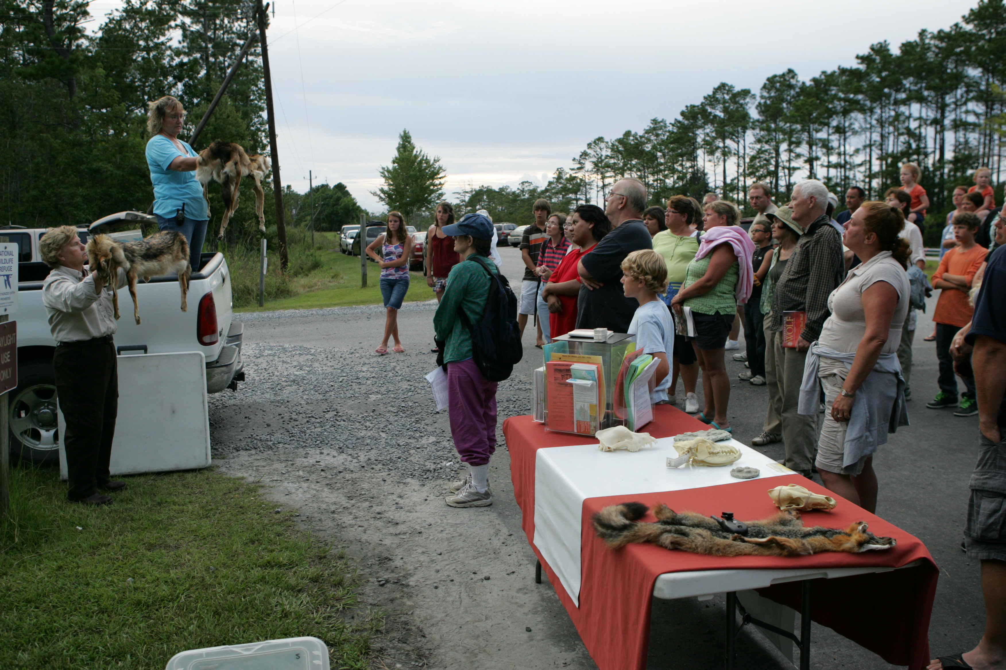 Alligator River National Wildlife Refuge visitors gather for a presentation about the Red wolf, endangered species.