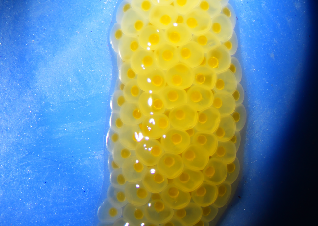 A vibrant egg mass from a hybrid female darter.