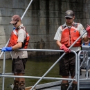 U.S. Fish and Wildlife Service employees electrofishing for invasive carp.