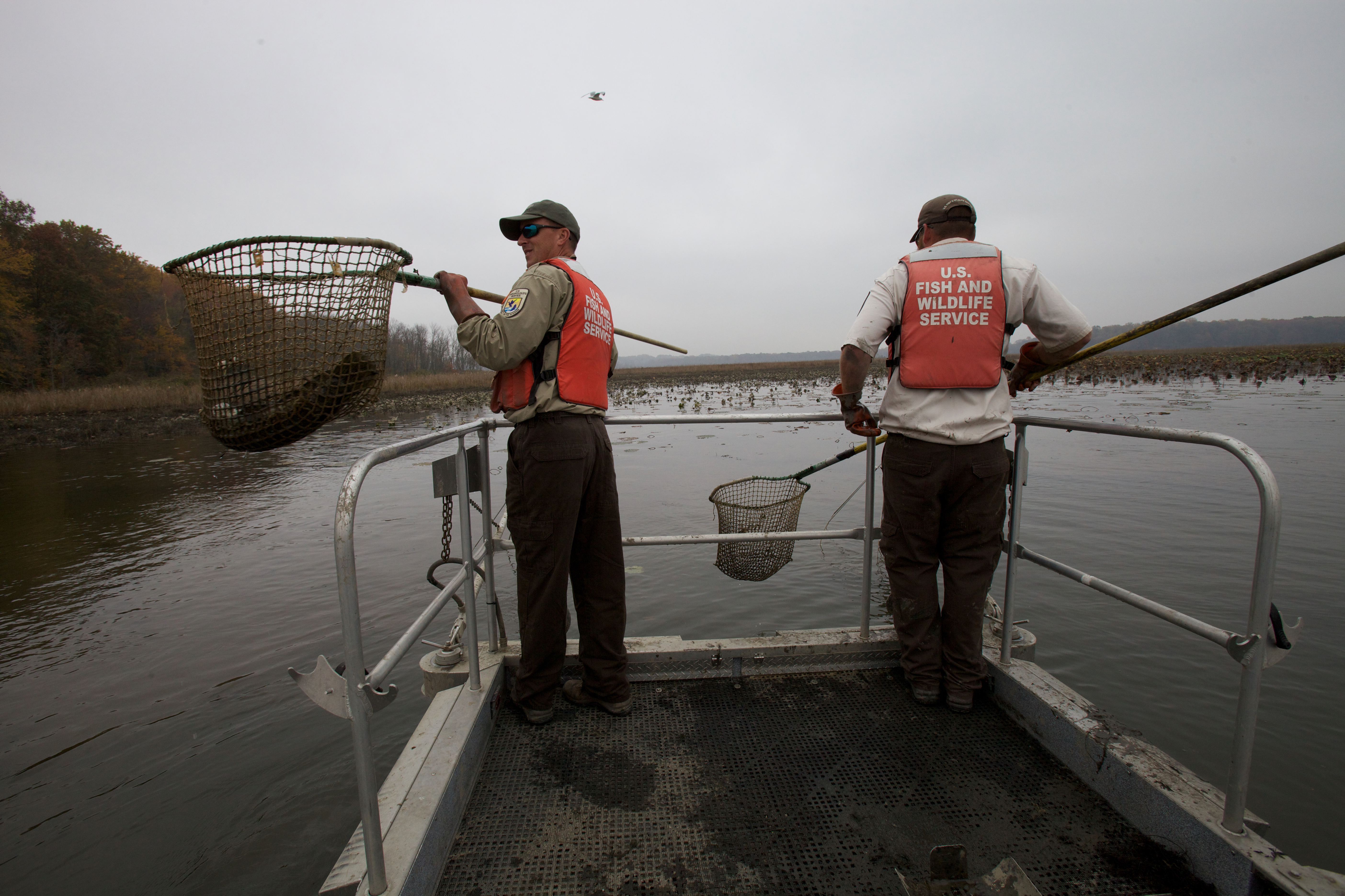 USFWS Biologists electrofish for the invasive Northern Snakehead