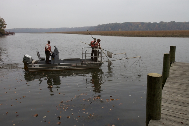 USFWS Biologists electrofish for the invasive Northern Snakehead