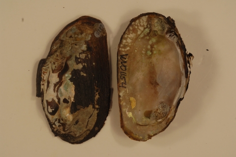 NCTC Freshwater Mussels Teaching Collection: Order: Unionoida Family: Unionidae Genus (ITIS): Elliptio Species: complanata Williams et al.: Use to be: Location Name: Cacapon River, 700m upstream of Mouth of Potomac River, Morgan co., WV Location State:
