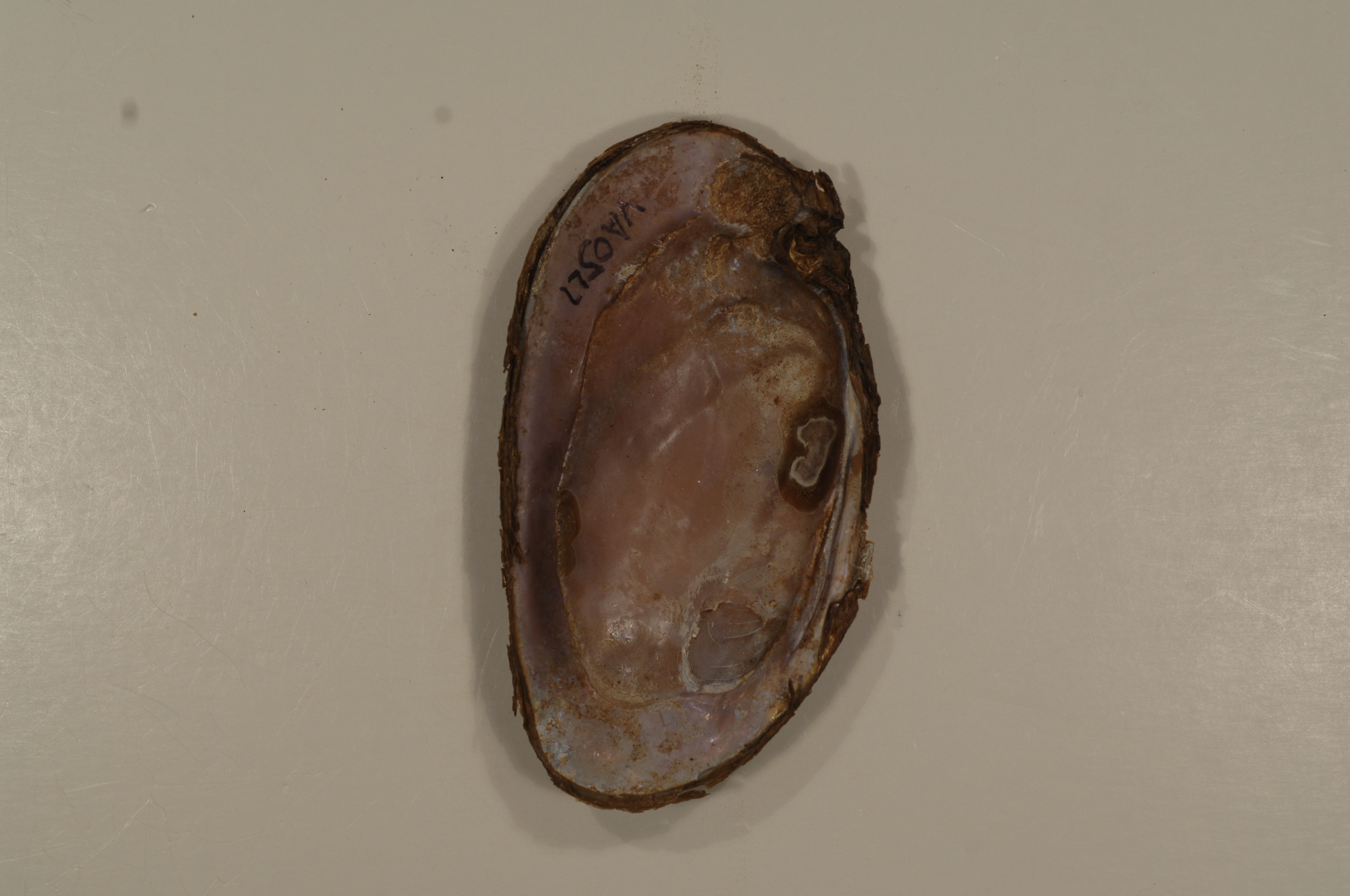 NCTC Freshwater Mussels Teaching Collection: Order: Unionoida Family: Unionidae Genus (ITIS): Elliptio Species: complanata (inside) Williams et al.: Use to be: Location Name: Broad Run, Manasses Location State: VA