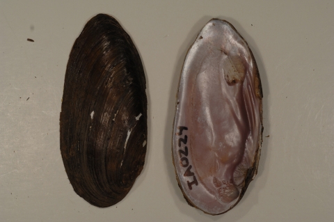 NCTC Freshwater Mussels Teaching Collection: Order: Unionoida Family: Unionidae Genus (ITIS): Elliptio Species: dilatata Williams et al.: Use to be: Location Name: Mississippi River, Marquette S. US Hwy 18 Bridge, Pool 10, Clayton County Location State: