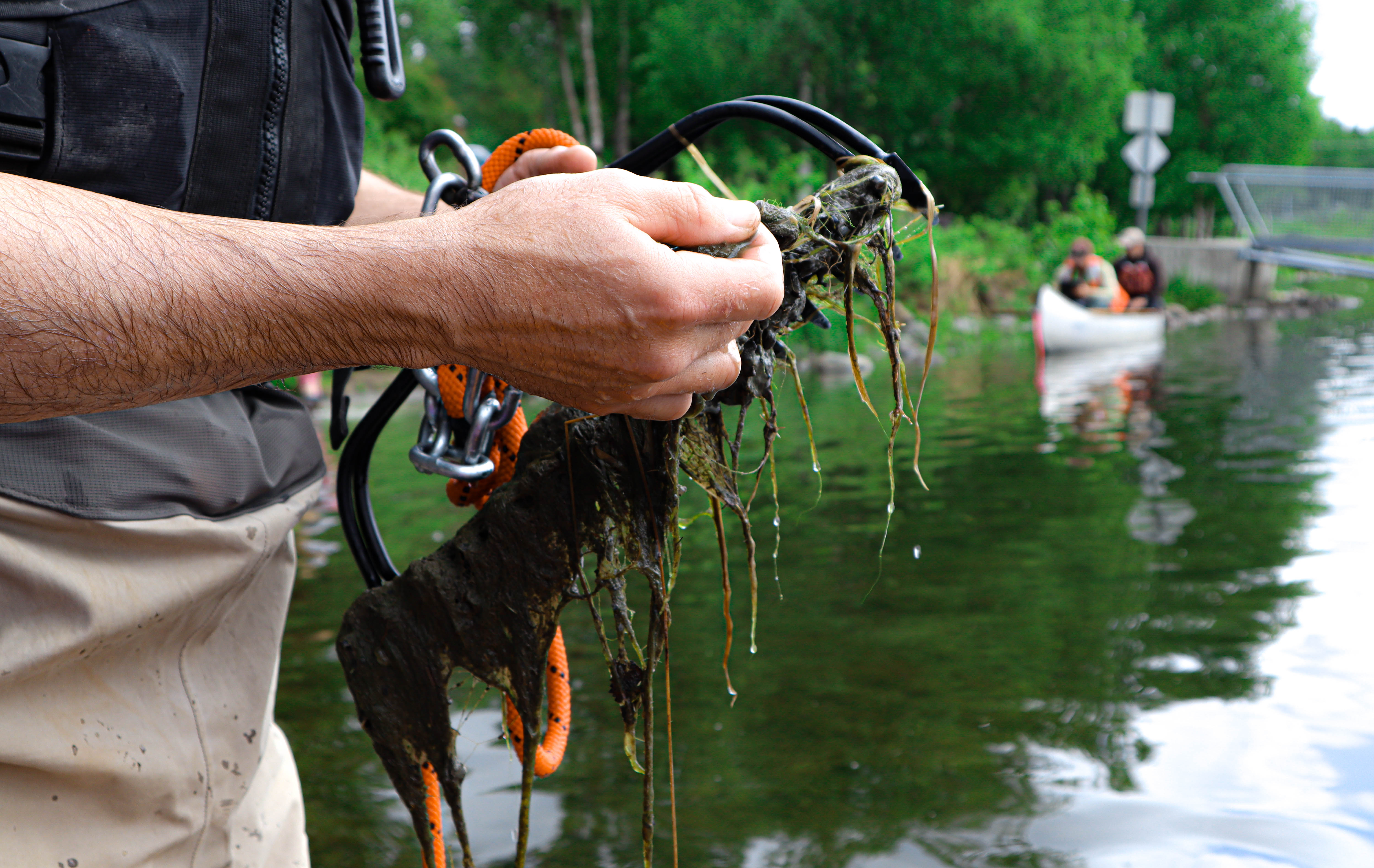 USFWS Invasive Species Program staff surveying for Elodea (Alaska's first aquatic invasive plant) in Delong Lake, Anchorage, AK during summer of 2021.