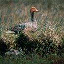 Emperor goose with goslings