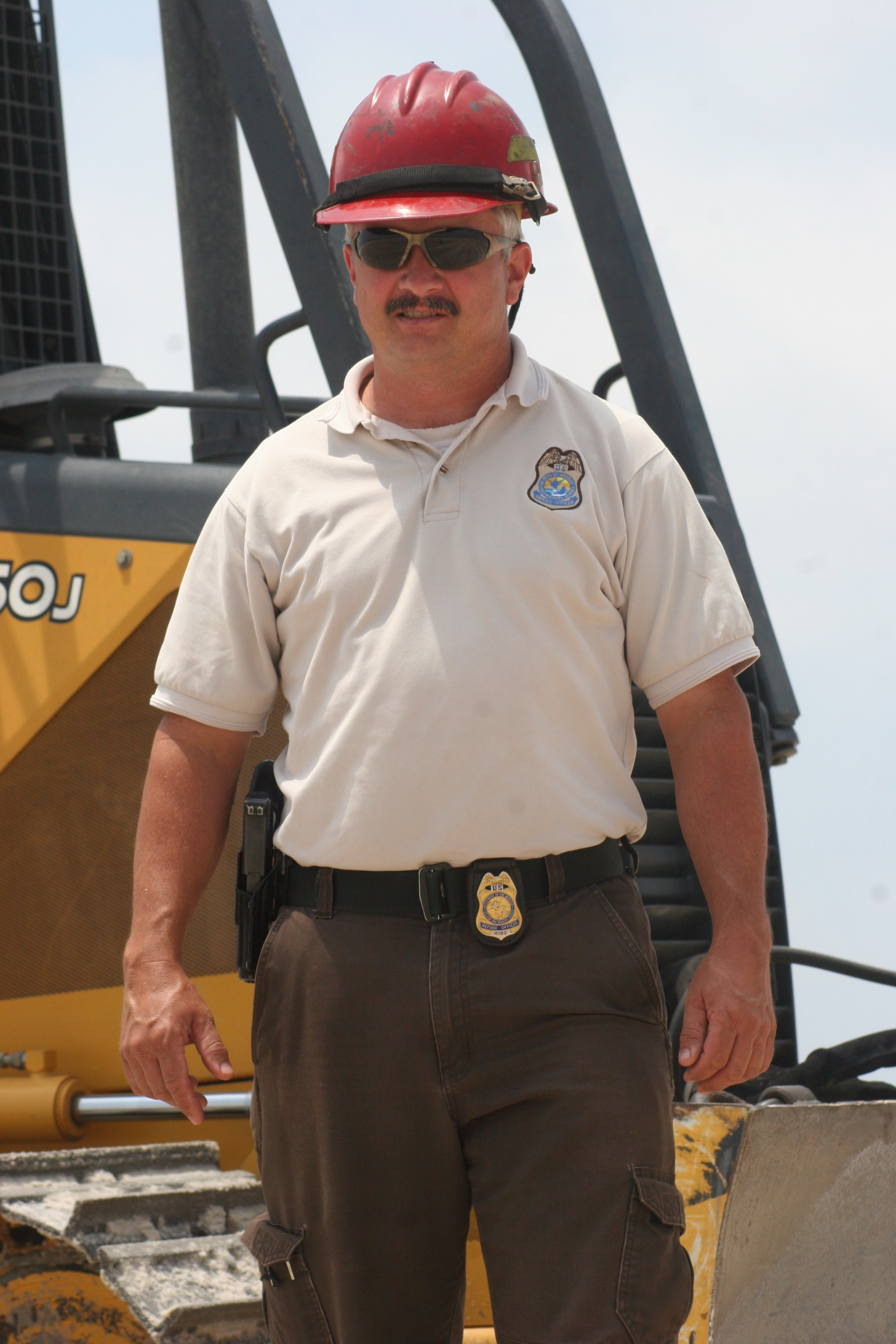 Employee and bulldozer