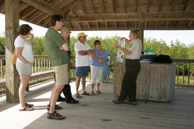 A USFWS employee assists refuge visitors.