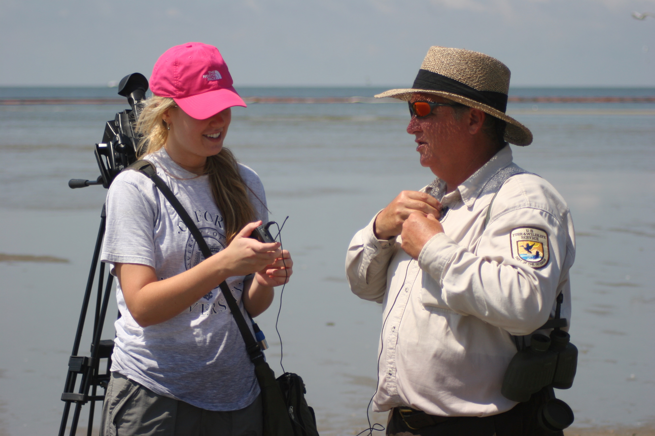 U.S. Fish and Wildlife Service employees Jennifer Strickland and James Harris at the Breton National Wildlife Refuge.
