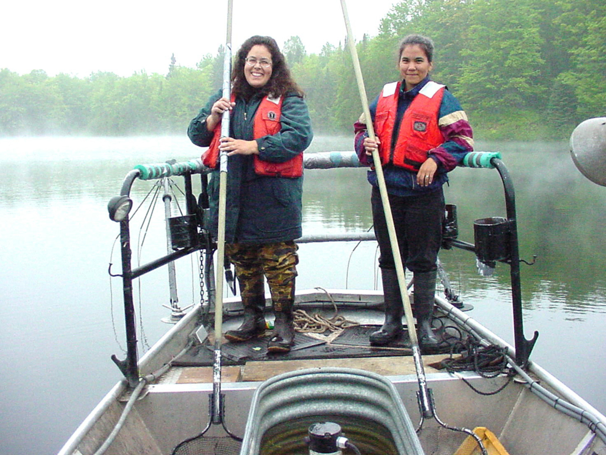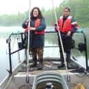 Evelyn Ravindran and Juliet Ellenich stocking Fish.Keweenaw Bay Indian Community