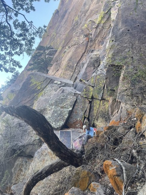 Loren Ammerman with Angelo State University setting up equipment to survey for Mexican long-nosed bats at Emory Peak in Big Bend National Park.