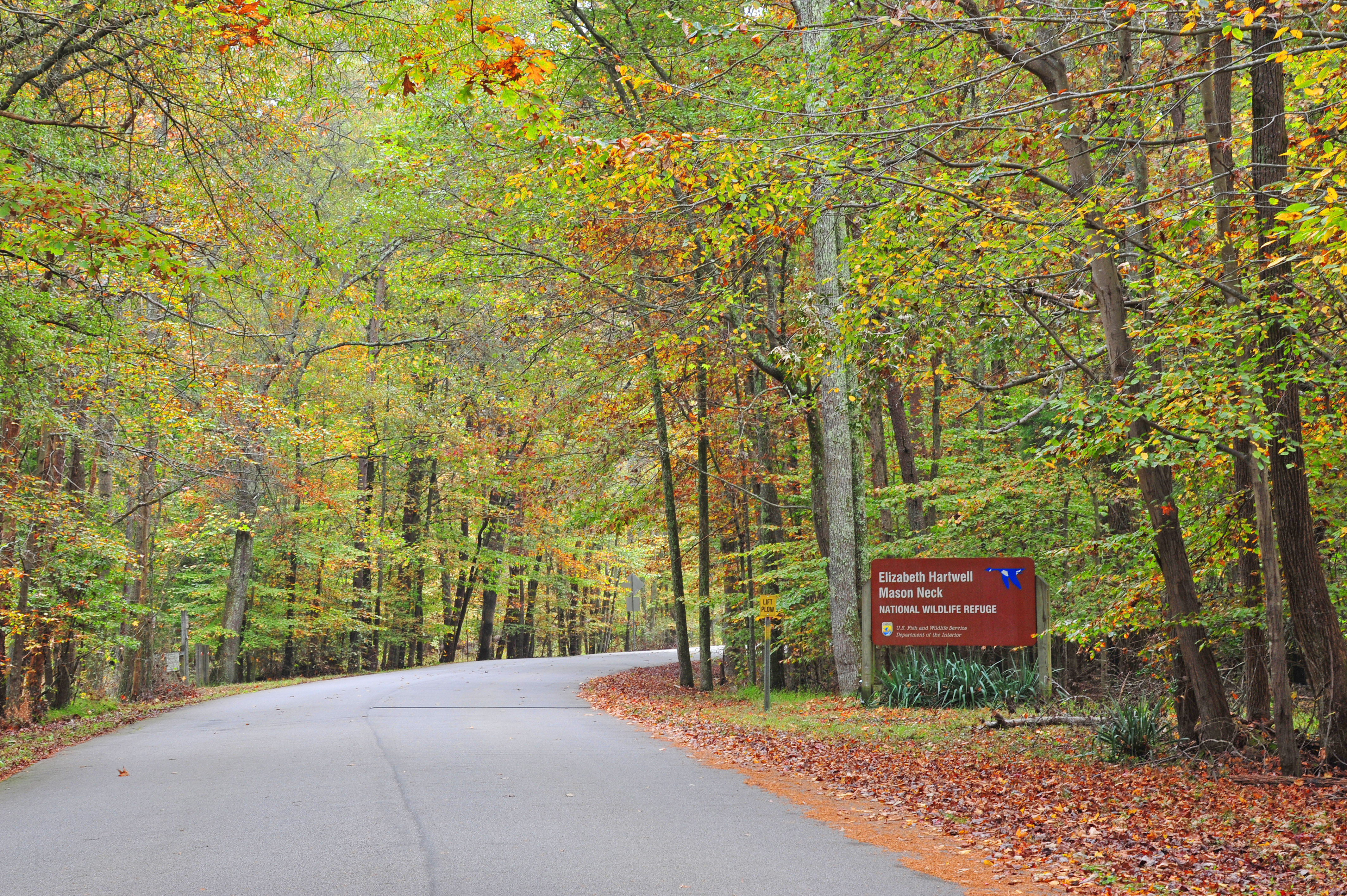 Entrance Road with sign for Elizabeth Hartwell Mason Neck NWR