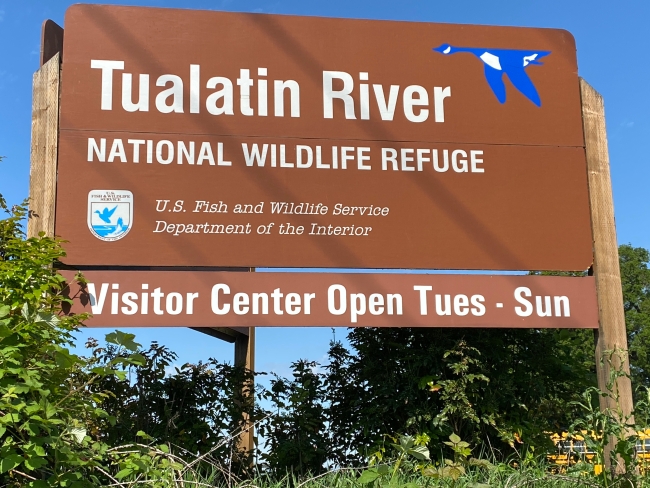 Look for this sign, marking the entrance to the refuge from Highway 99 (Pacific Highway). If you are coming from the South, be aware that you have to drive past the entrance and perform a U-turn at a designated spot just to the North of the entrance.