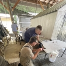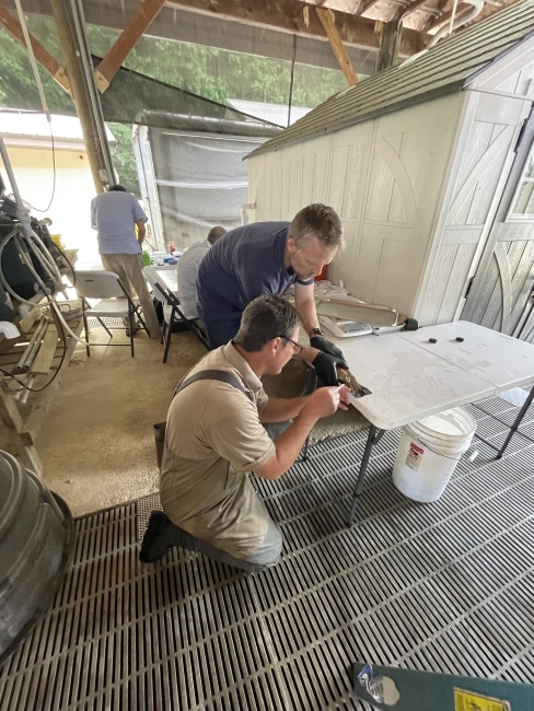 Drew Elkman, Quincy Teng, and Tim Collette came to the Warm Springs Fish Technology Center in late May. Bill Wayman and Valerie Kearny assisted the biochemists in obtaining blood from over 90 resident Rainbow Trout. The biochemists were using various molecular features of the fish blood to further improve and calibrate a model aimed at inferring water quality via animal health metrics.