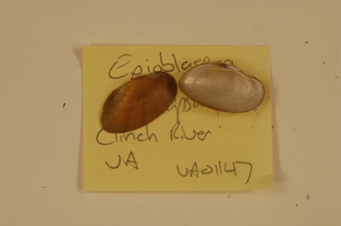 NCTC Freshwater Mussels Teaching Collection: Order: Unionoida Family: Unionidae Genus (ITIS): Epioblasma Species: capsaeformis Williams et al.: Use to be: Location Name: Clinch River, VA Location State: VA