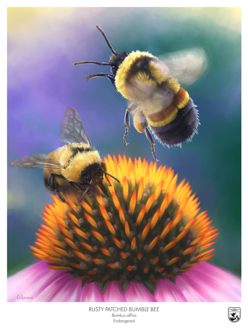 In celebration of the 50th Anniversary of the Endangered Species Act, the Service created a series of listed species portraits, including this one of a Rusty patched bumble bee. Artist: Cal Robinson, public affairs specialist at the Service's Sacramento Fish and Wildlife Office.