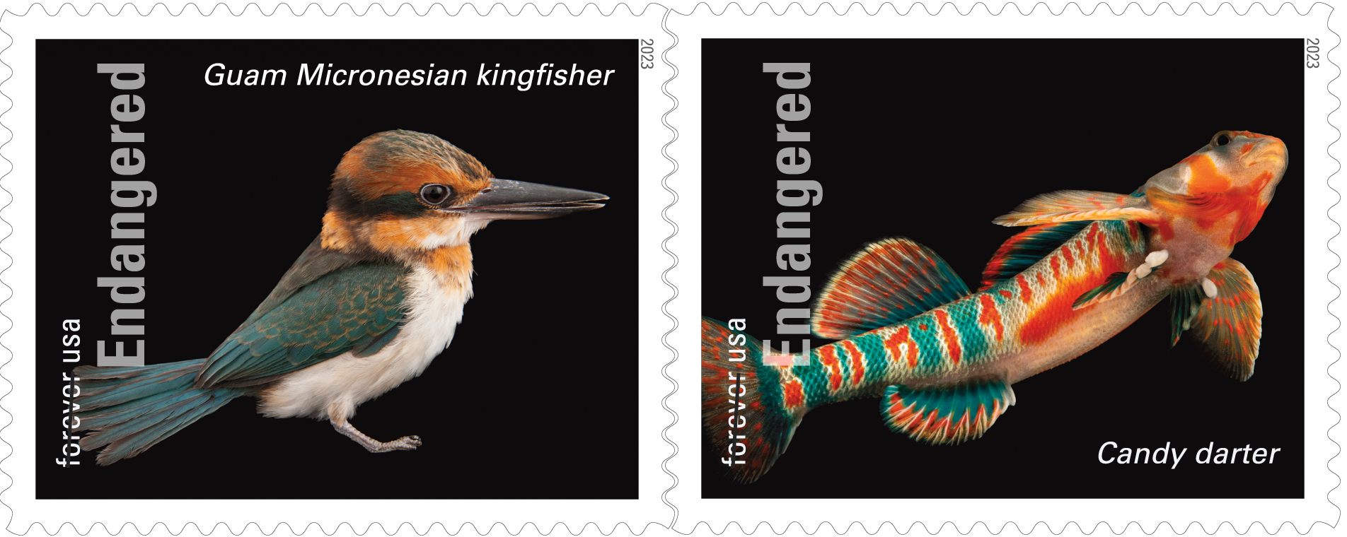Once found throughout Guam, the sihek, or Guam Kingfisher, was declared extinct in the wild around 1988 due to the accidental introduction of the predatory brown treesnake. The candy darter and its beautiful colors are disappearing from their habitat as pressure increases from a rival fish species introduced into its waters: the variegate darter