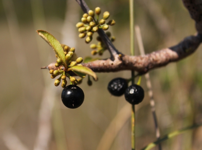 Everglades bully is a 3 to 6-foot thorny perennial shrub with one to several stems and clusters of small white flowers. The shrub is native to Miami-Dade County and only grows in pine rocklands.