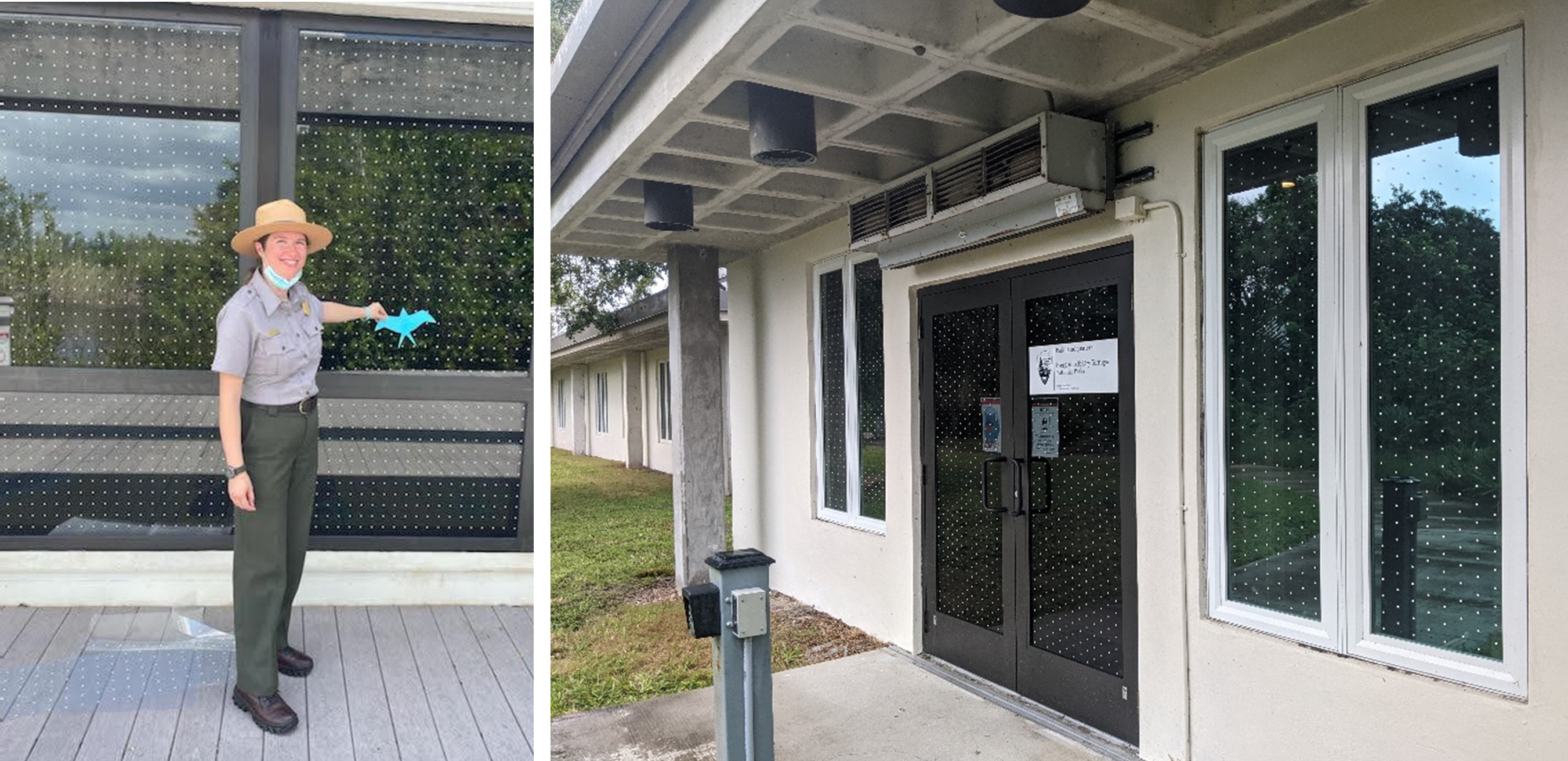 Rachel DiPietro standing by window treatments at Everglades National Park, Ernest F. Coe Visitor Center by NPS
