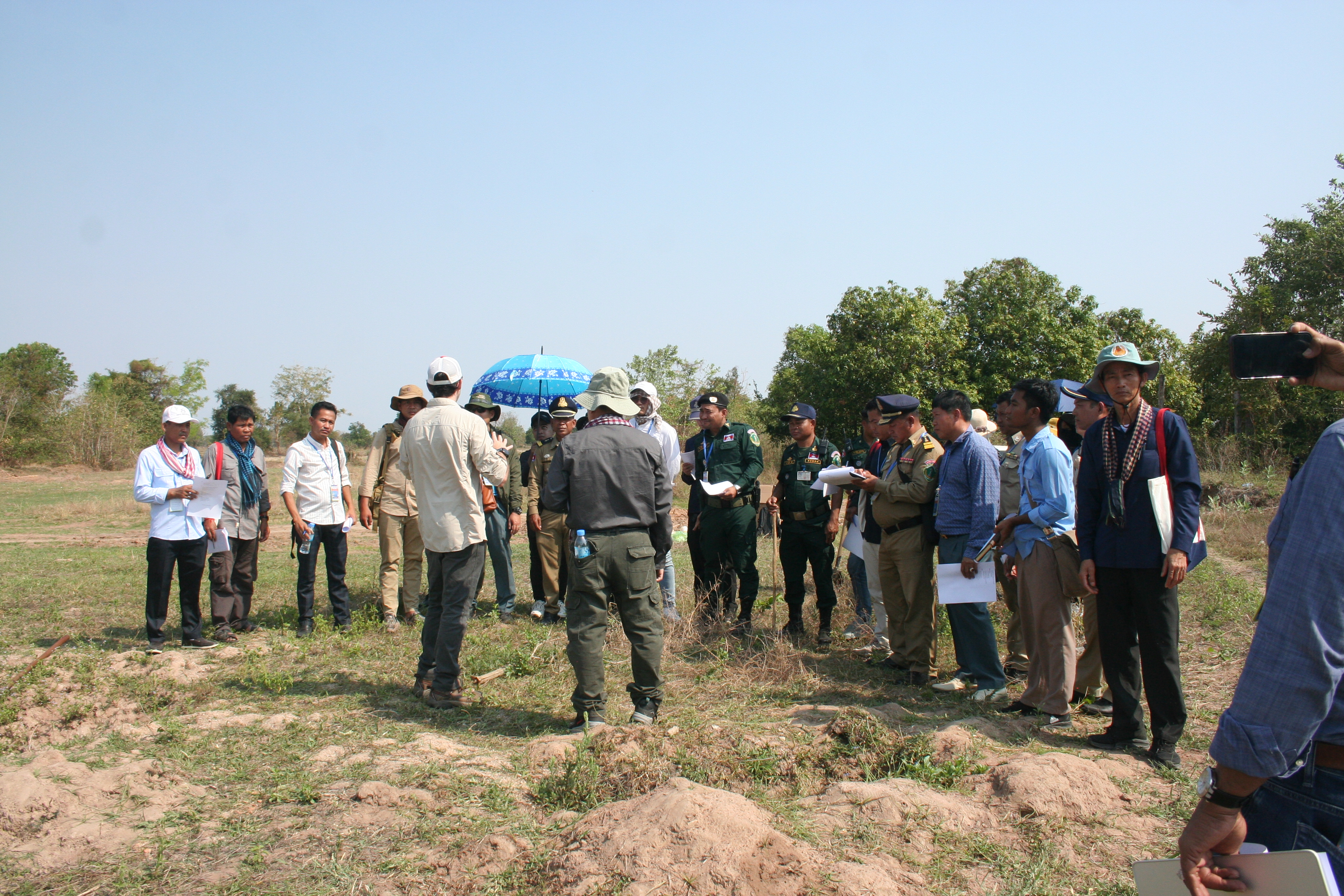 Heritage police and archaeologists receive instructions on evidence collection at a Bronze Age site in Cambodia in February 2023.