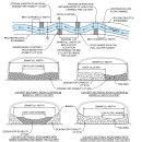 A plan view of a culvert with a stream channel running through it. Rock clusters and rock bands are depicted spaced at five times the bankfull width maximum or a maximum of 0.8 feet elevation difference between these structures. Rock clusters span the partial culvert width and rock band span the full culvert width. The rock bands and rock clusters are designed from material that's designed for stability at the 100-year flood flow. The channel substrate material is designed for stability at the 50-year flood flow. At least one half bankfull width is provided between the culvert inlet or outlet and a rock band or rock cluster structure.