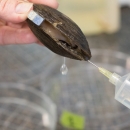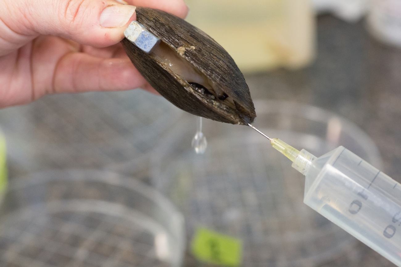 Extracting glochidia from freshwater mussel.