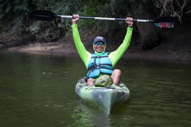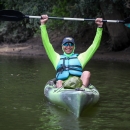 Junior faculty cheering during kayaking trip at the Potomac River at the Native Youth Community Adaptation Leadership Congress (NYCALC).