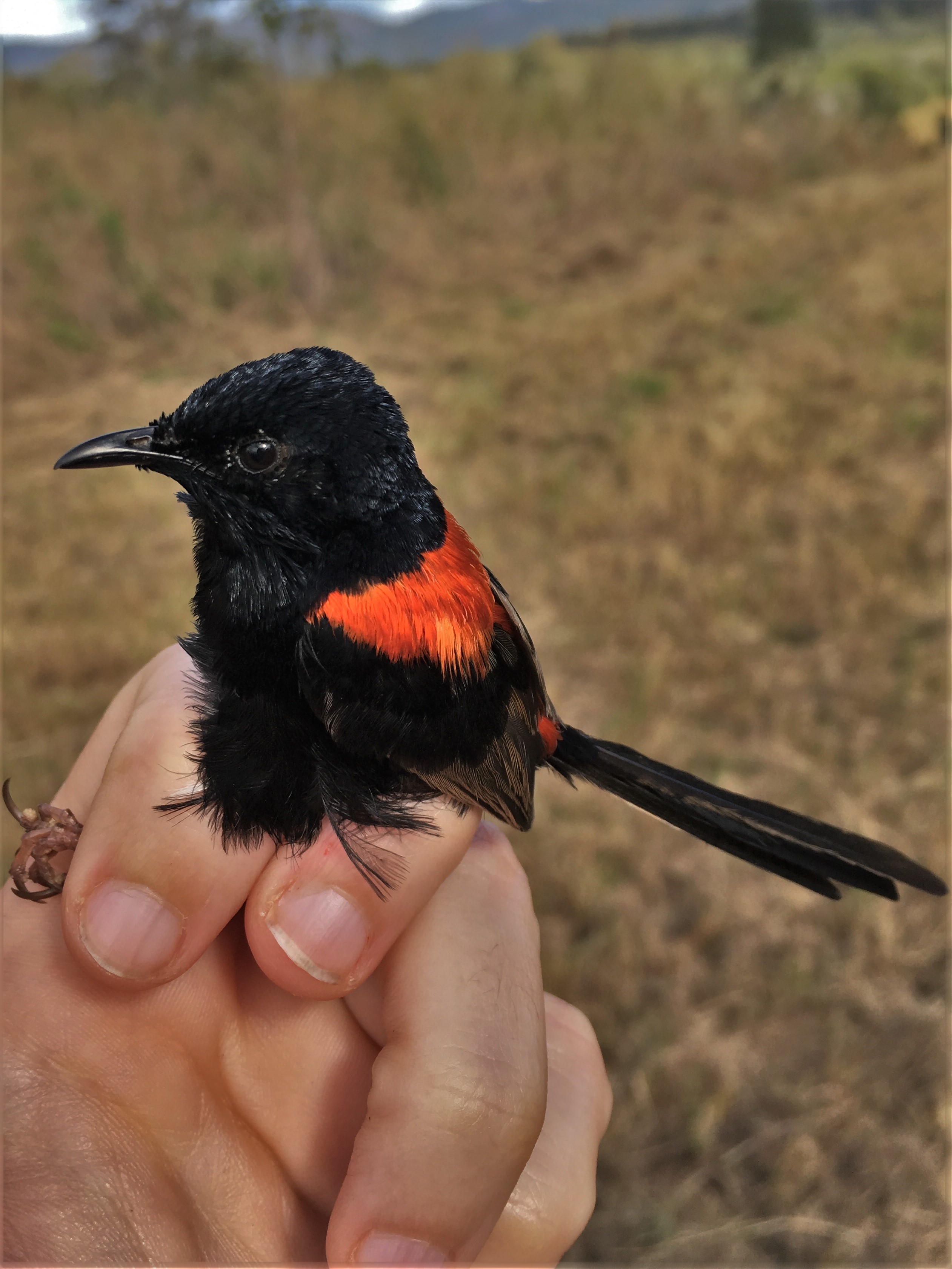 A male red-backed fairywren (Malurus melanocephalus) in the full red and black breeding plumage.