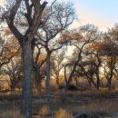 Trees in fall in the Rio Grande "Bosque" adjacent to Valle de Oro National Wildlife Refuge in New Mexico.