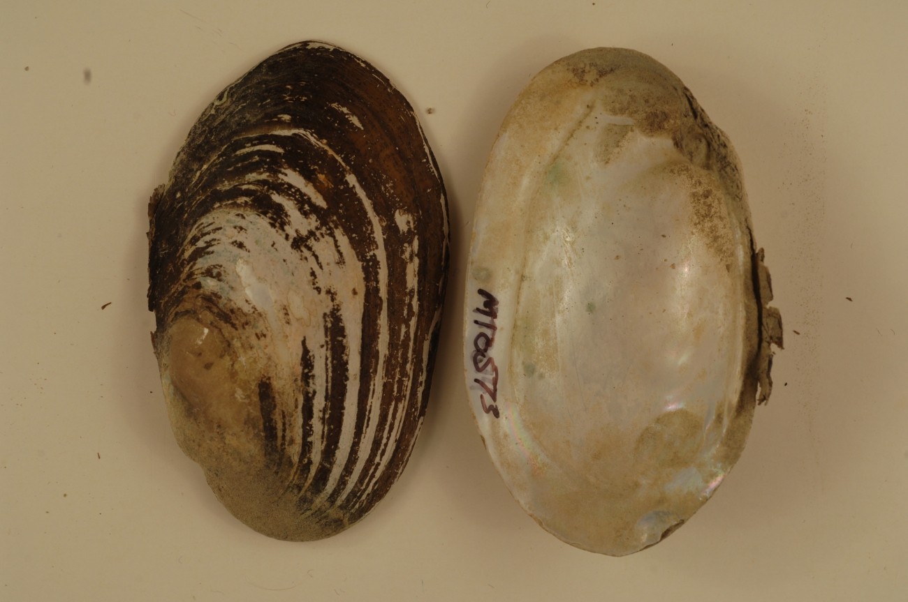 NCTC Freshwater Mussels Teaching Collection: Order: Unionoida Family: Unionidae Genus (ITIS): Lampsilis Species: siliquoidea Williams et al.: Use to be: Location Name: Jefferson River at Sappington Bridge Location State: MT