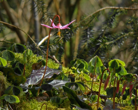 Fawn lily at Nestucca Bay National Wildlife Refuge. It is native to western North America, where it grows in the Pacific Coast Ranges from southwestern British Columbia to northern California.