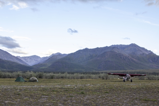Senior Federal Wildlife Officer/Airplane Pilot Cody Smith sets up camp near his plane at remote airstrips on and around Arctic National Wildlife Refuge during multi-night patrols.