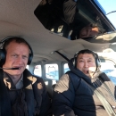 Then Yukon Delta NWR Manager Boyd Blihovde (left) in the cockpit of a single engine plane with (right) Federal Wildlife Officer Robert Sundown.