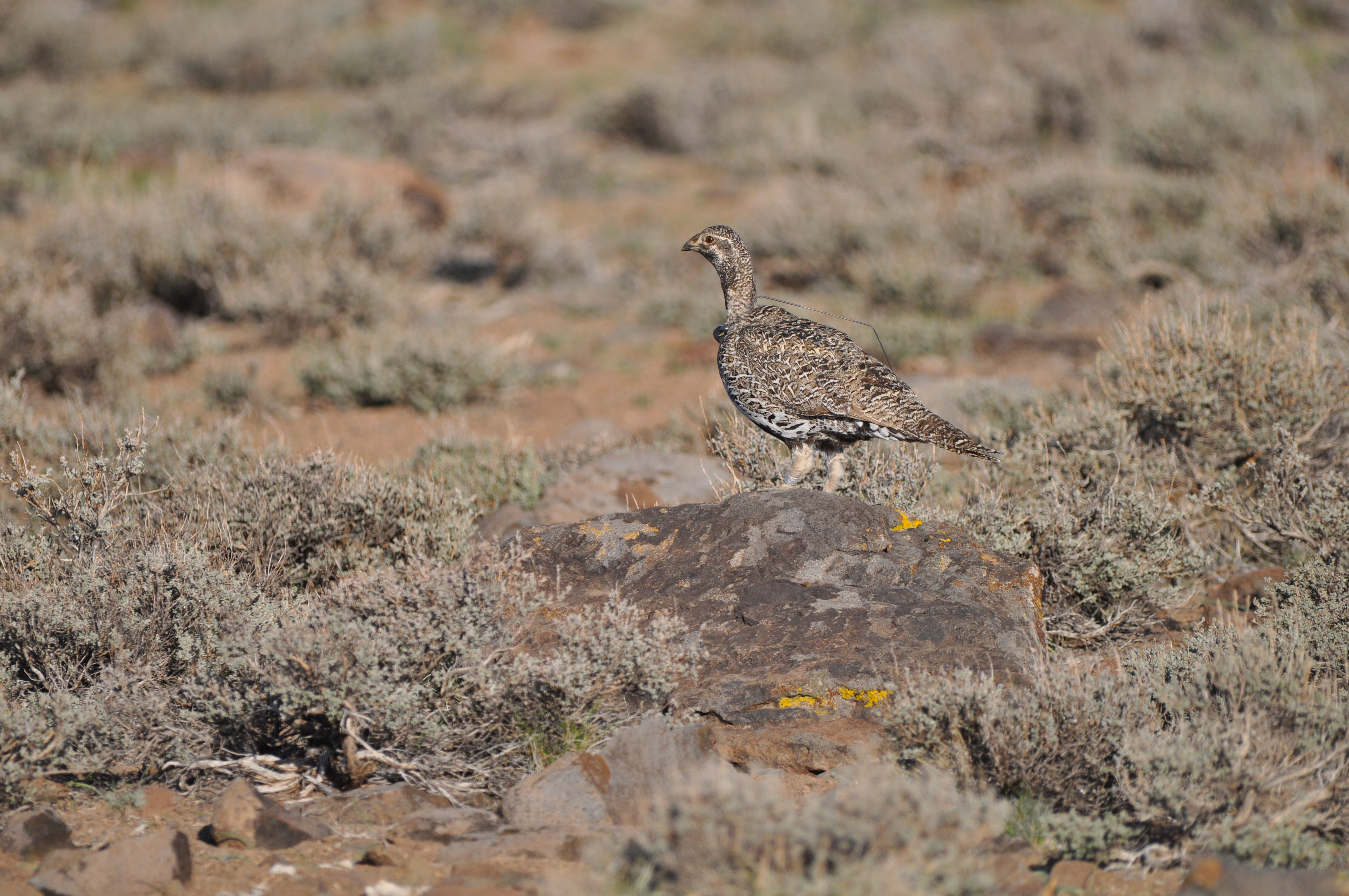 Radio-collared female Bi-State sage-grouse in Nevada. Photo by USFWS