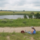 An visitor on the Tatanka Trail overlooking Prairie Pothole