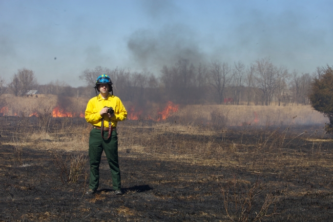Fire crew burns fields for habitat management