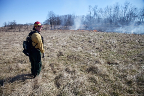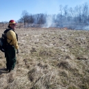 Firefighter looking out over burn field. NCTC Prescribed Burn