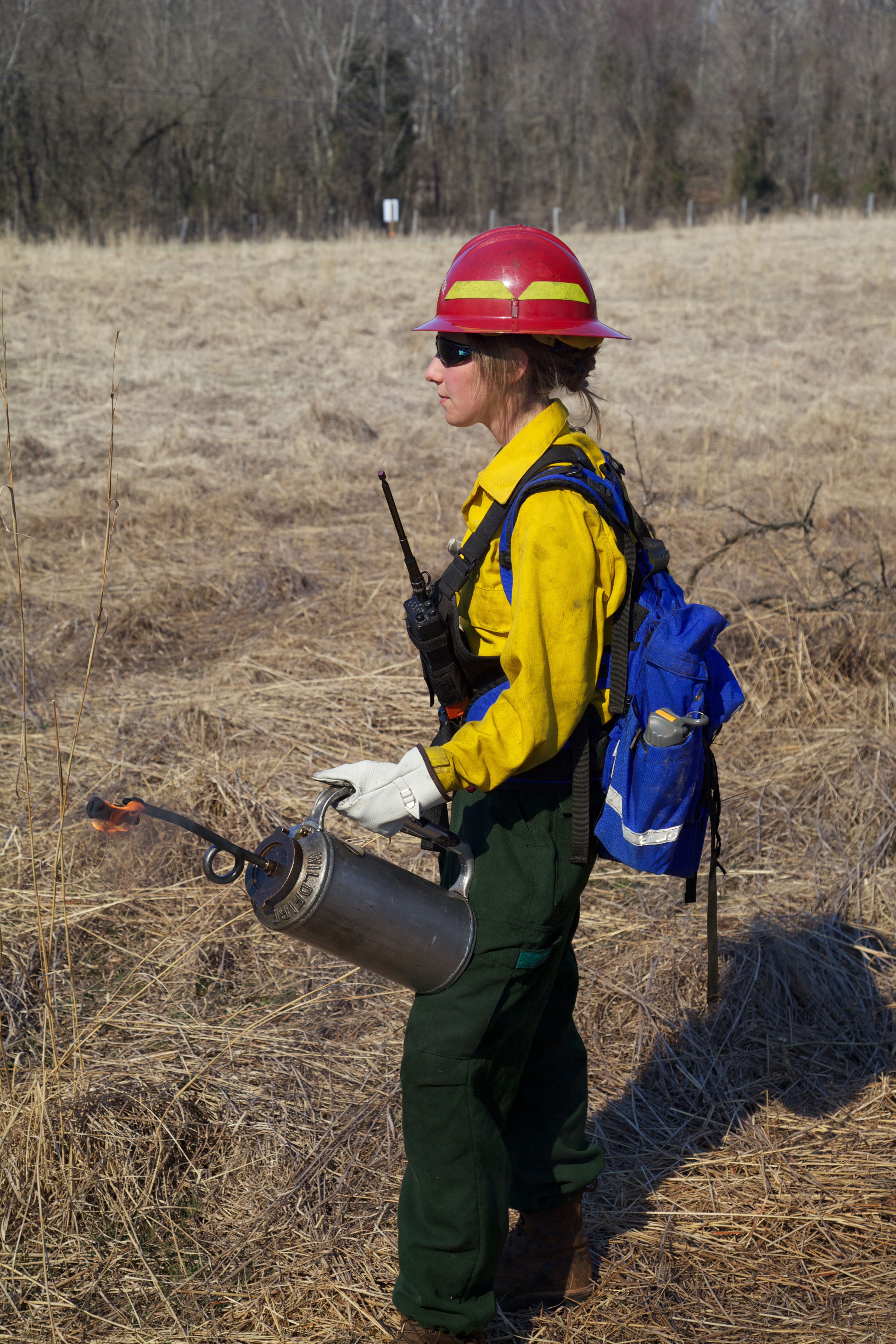 Firefighter with torch in hand. NCTC Prescribed Burn