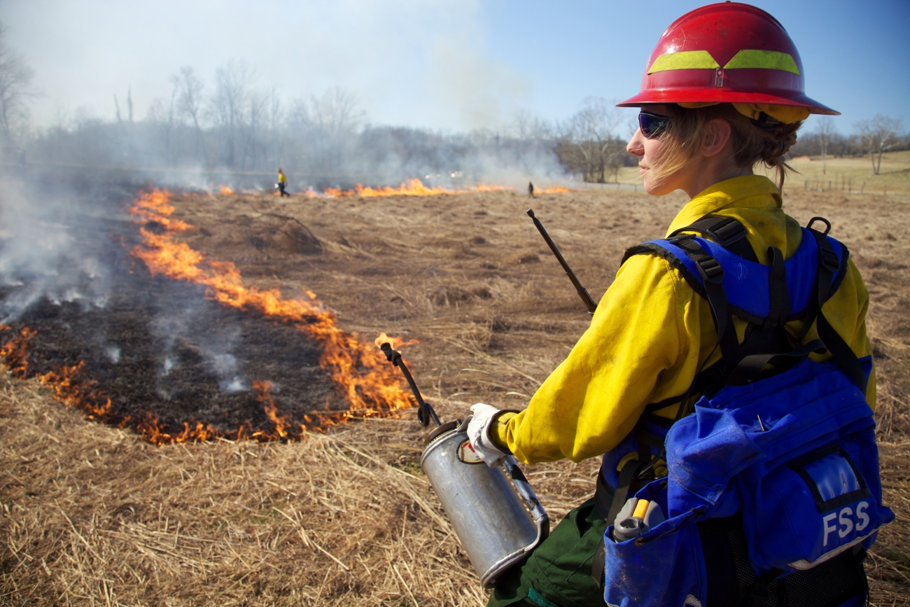 Firefighter with torch in hand. NCTC Prescribed Burn