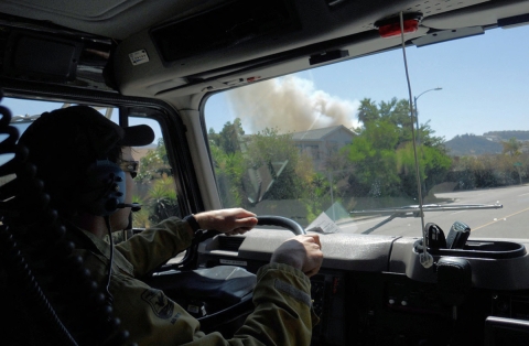 US Fish & Wildlife Service Engineer 58, Rex Hambly, responds with fire crew to the Jamacha Fire. Image taken from USFWS Pacific Southwest Region Flickr page.