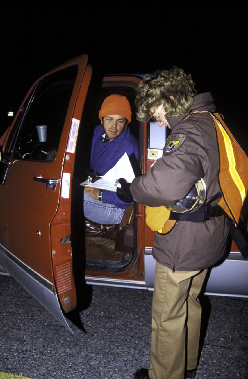EASTERN NECK NWR HUNTER CHECK IN. A U.S. Fish and Wildlife Service official checks in a hunter at Eastern Neck National Wildlife Refuge in Maryland. The 1997 National Wildlife Refuge System Improvement Act gives priority to certain wildlife-dependent re