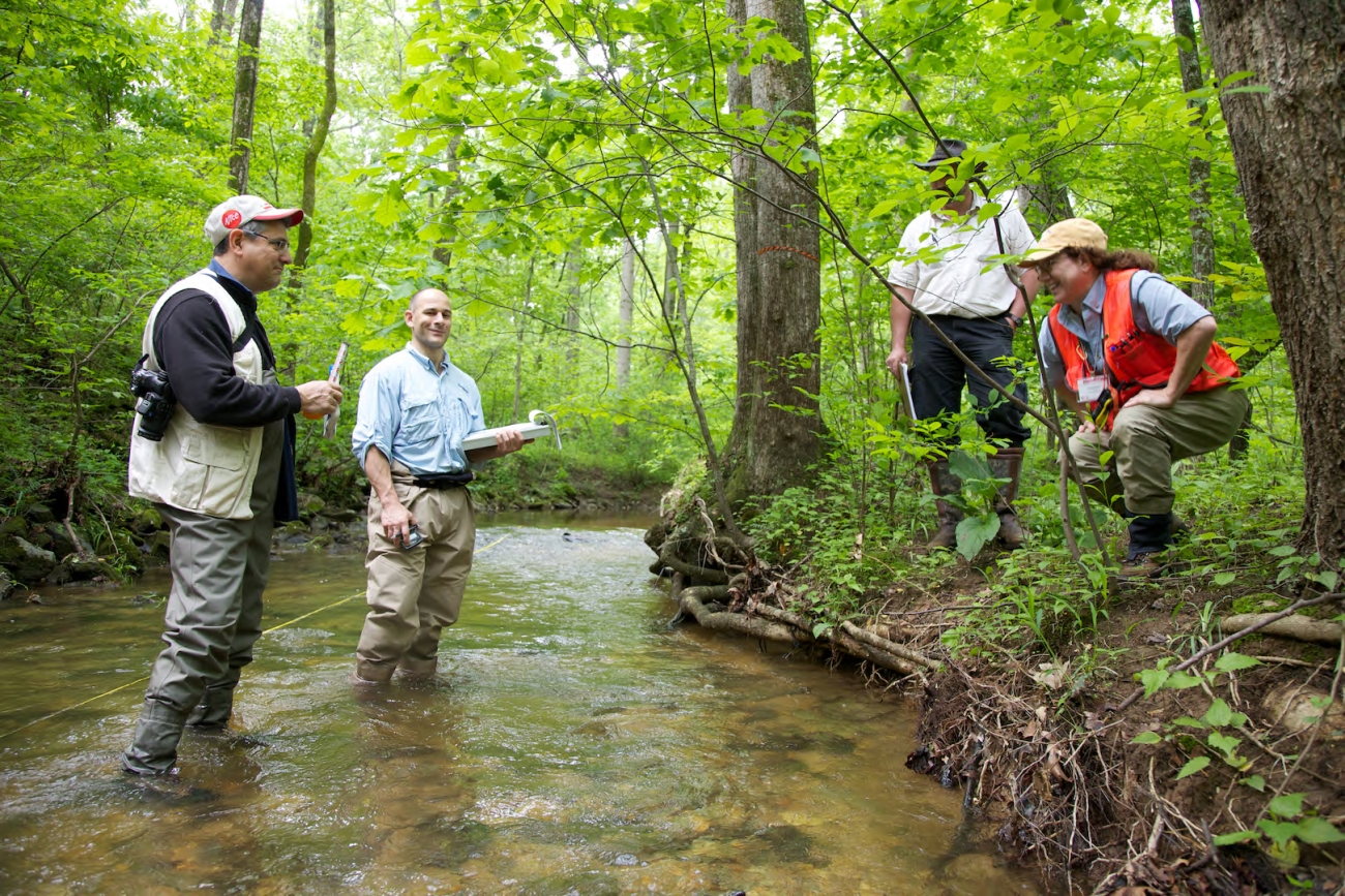 Fish and Wildlife Service employees surveying and assessing rivers and streams