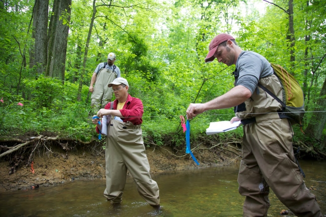 Fish and Wildlife Service employees surveying and assessing rivers and streams