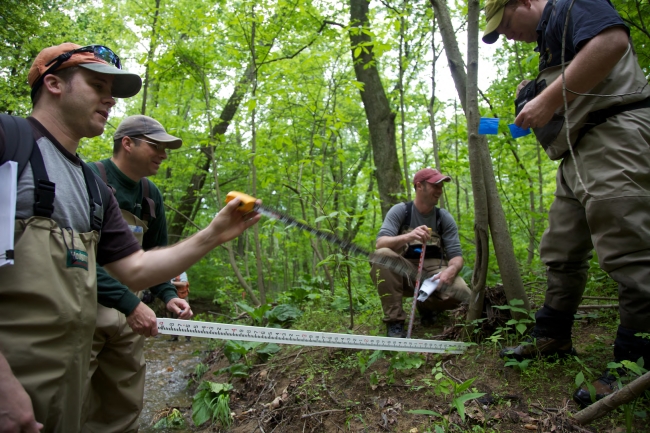 Fish and Wildlife Service employees surveying and assessing rivers and streams