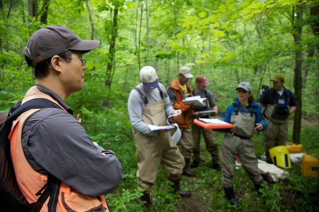 Fish and Wildlife Service employees surveying and assessing rivers and streams