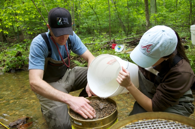 Fish and Wildlife Service employees surveying and assessing rivers and streams