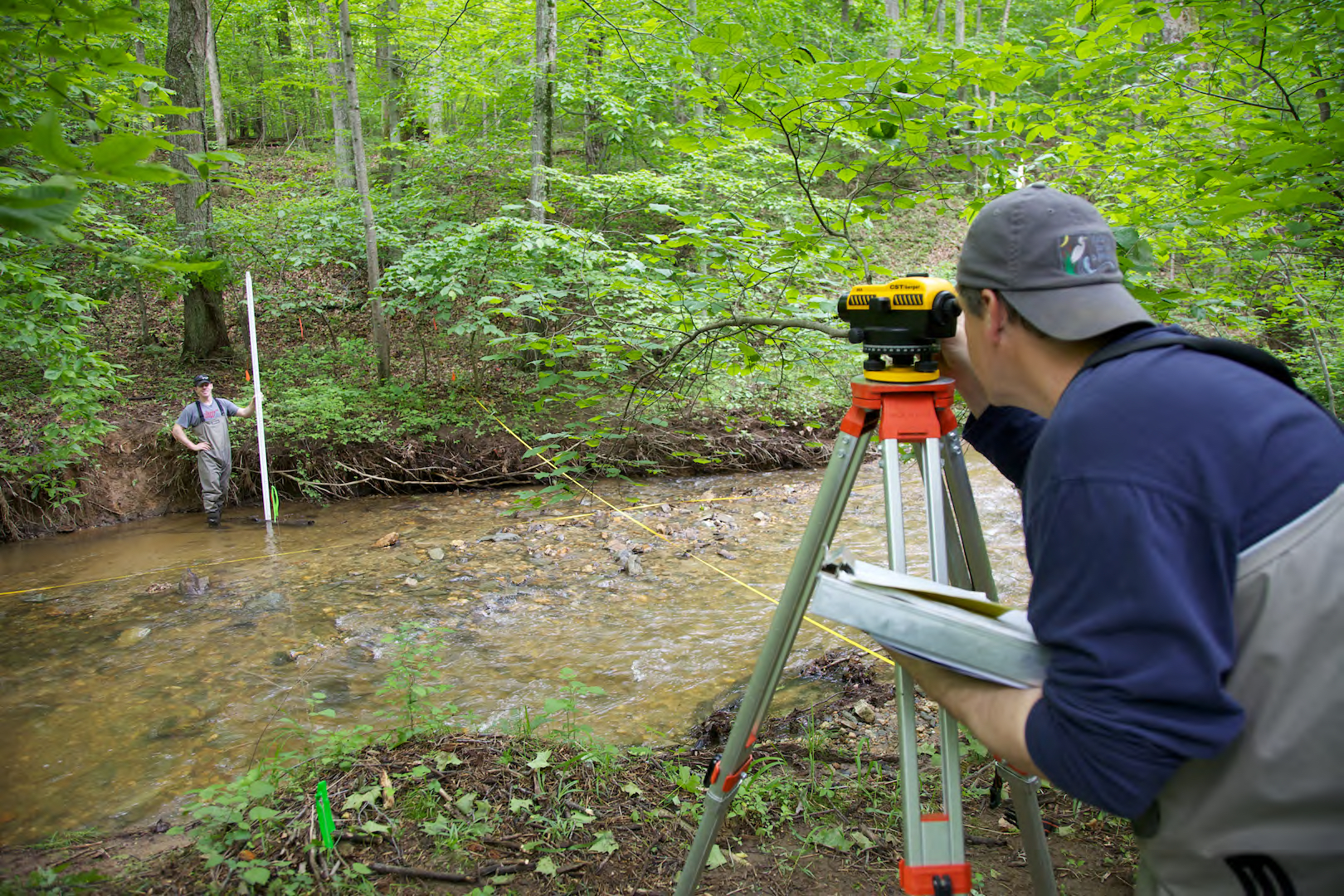 Fish and Wildlife Service employees surveying and assessing rivers and streams